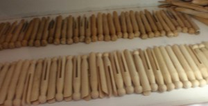 Ich bin mir aber ziemlich sicher, dass deren Bemalung, Verzierung mit Geschenkband, Hütchen und Flügeln aus Naturmaterialien von Herrn Pazaurek als Geschmacksverirrung verworfen worden wäre. Die Klammerdamen wären wohl in die Kategorie „wunderliches Material“ gefallen – damit kann man doch ganz gut leben.