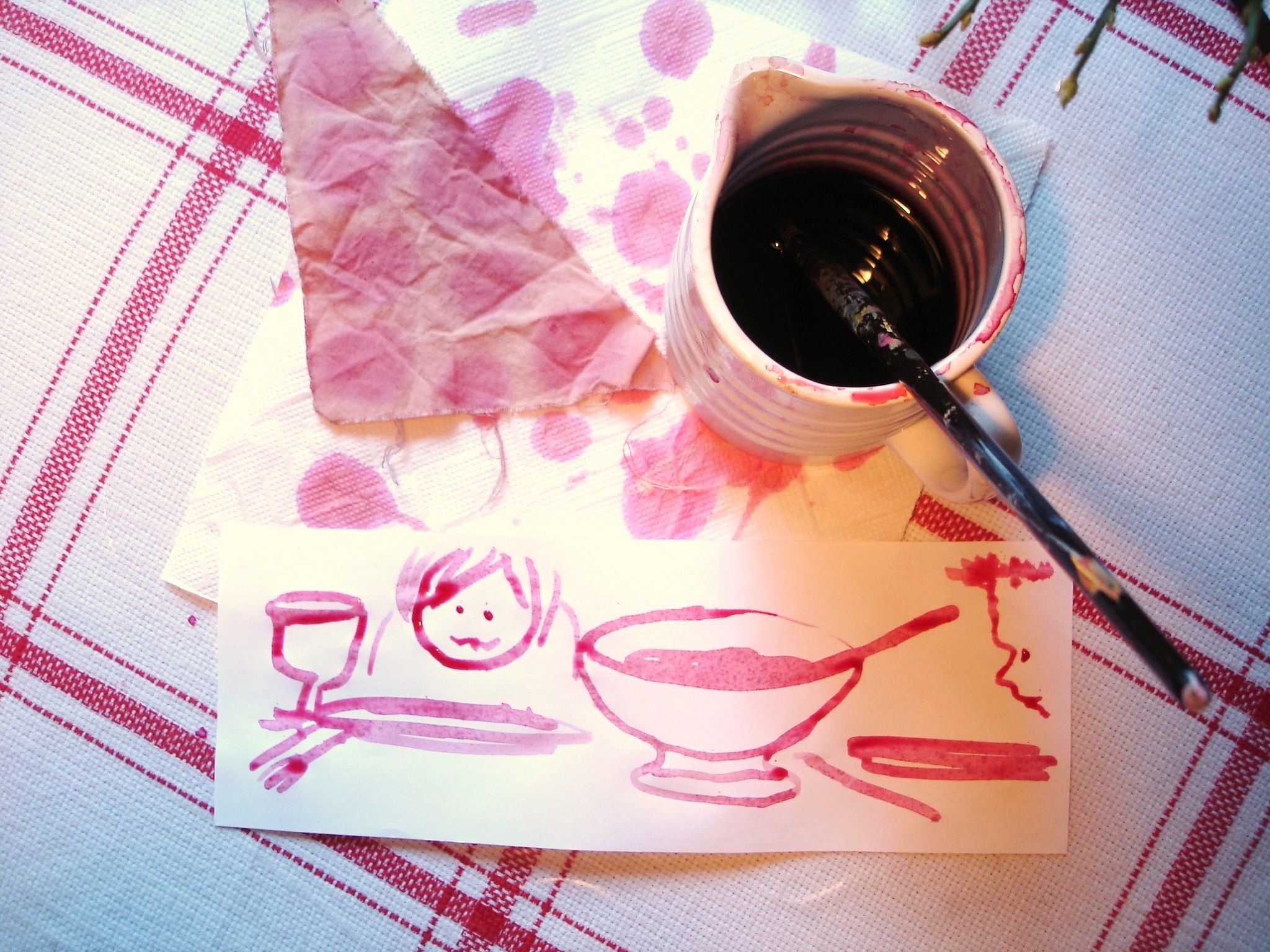 Vorgestern hat sie in einem Anfall von österlichem Tortenbackwahn meinen Papiervorrat mit Schokosahne überspritzt…ganz neue Technik…aber du siehst: Kunst und Nahrungszubereitung geht prima zusammen. (ach so: die Torte fiel aus!)