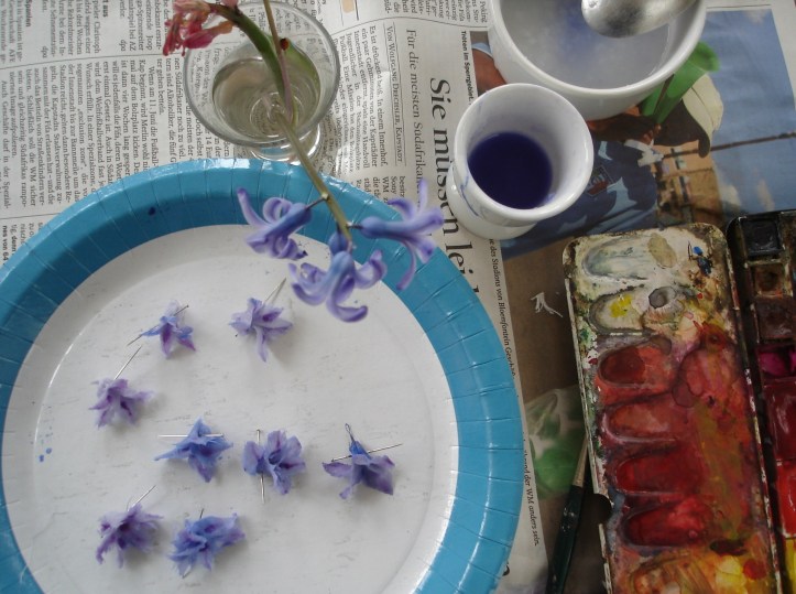 1. Hyazinthenblüten lassen sich tatsächlich eintrocknen. Ich experimentiere gerade mit getrockneten Tulpen rum, die Hyazinthen sehen auch toll aus, aber ob sie sich auf eine Kette auffädeln lassen, das bezweifel ich sehr :)