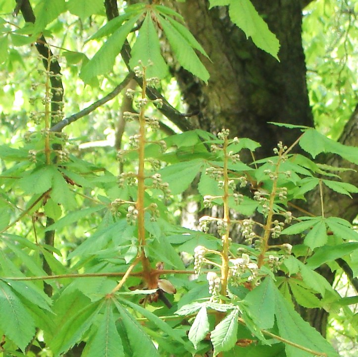 Diese „Rispen“ gehören zu der riesigen Kastanie, wegen der  wir von Mai bis Oktober im Haus auch tagsüber elektrisches Licht  anmachen müssen.  Mein Versuch, die Blütenstände  nachzuhäkeln, ging dann doch in eine andere Richtung.