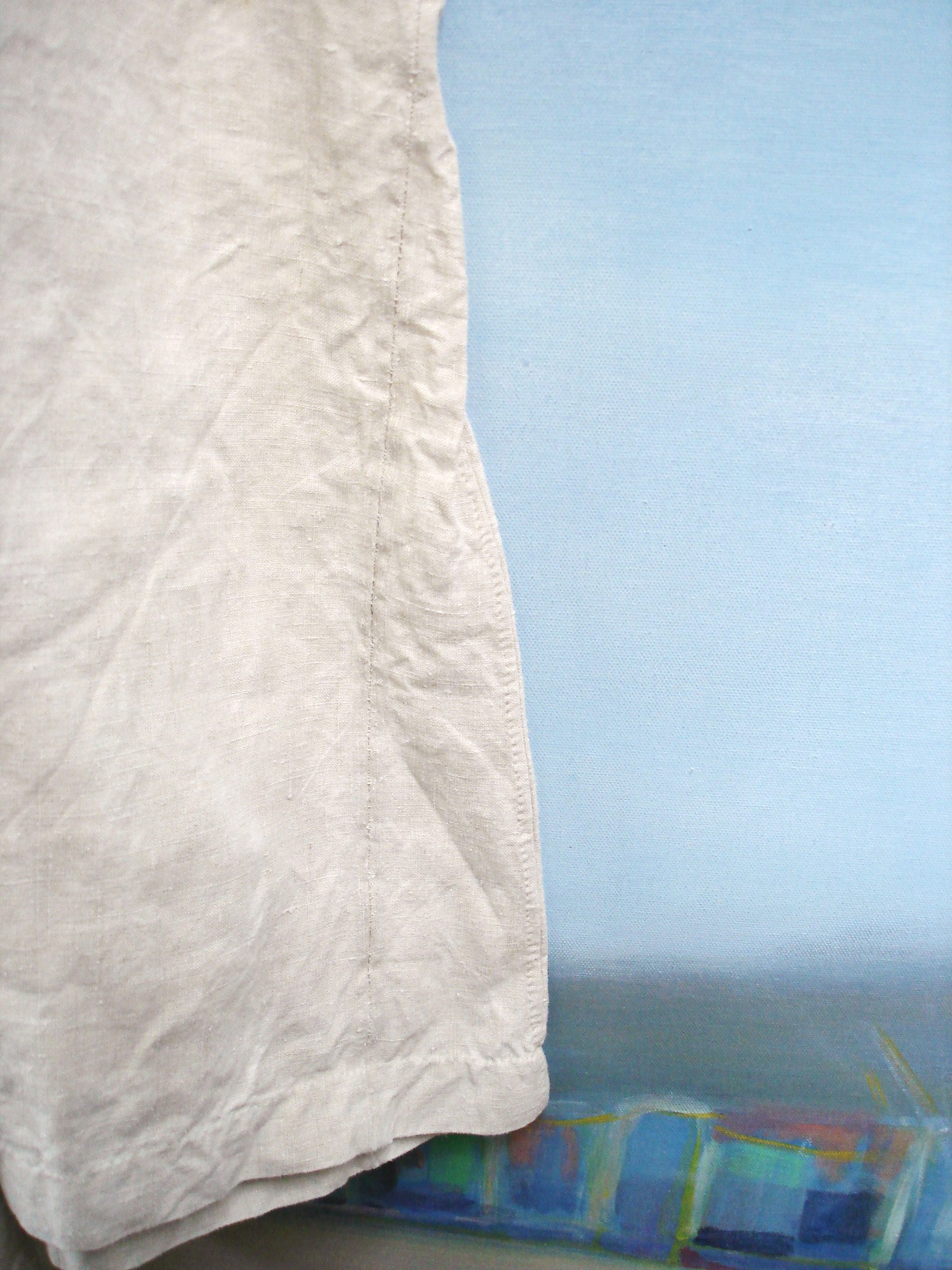 10. Ich habe ein Stück Leinen im Schrank, auf dem meine Oma einen Zettel befestigt hat mit der Aufschrift: „Das ist noch richtiges, echtes Leinen!“ Was der Hintergrund dieses Stoßseufzers ist, weiß ich nicht, aber er hat bislang verhindert, dass ich den Stoff weiterverarbeite. Es ärgert mich jedes Mal, ihn im Stoffvorrat zu finden, und ich muss gleichzeitig drüber lachen.