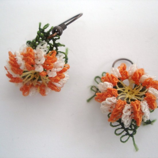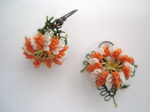Wie versprochen nun etwas zu den türkischen Spitzenarbeiten, die ich zuerst im Netz und dann auch in Istanbul entdeckt habe. Diese Spitzen werden Oya (Oyasi, Oyala, Oyalari) genannt und wurden traditionell als Borten für Tücher oder Kleider hergestellt. Es gibt unendlich viele Muster, die je nach Zusammenstellung auch Hinweise auf Status und Stimmung der Trägerin gaben. Die mich interessierenden Muster sind gehäkelt, es gibt aber auch Ausführungen in vielen anderen Techniken, z.B. der Nadelspitze, so wie bei diesen Ohrringen: