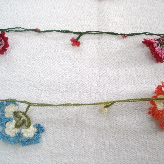 Die Ohrringe und die Blütenbänder oben auf den Fotos habe ich in Istanbul gekauft. Interessanterweise fand ich sie nicht in den Touristengeschäften rund um die traditionellen Sehenswürdigkeiten, sondern im Stadtteil Beyoglu, in dem sich eine junge, trendige Szene trifft. Offenbar haben die Boutiqueninhaber um den Galata-Turm bereits erkannt, welches Potential in diesen Handarbeiten steckt.