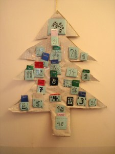 Meine Tochter wünscht sich jeden Advent genau diesen Adventkalender und ich muß ihn immer befüllen. Manchmal war das garnicht so einfach ich denke da an meine schlechtgelaunte Pubertierende mit Punkfrisur – also ehrlich da war alle Kreativität und Fingerspitzengefühl gefragt. Erschwerend kommt dazu das meine Tochter keine Sußigkeiten ißt