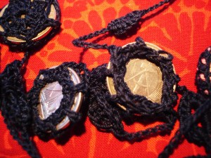 Ansonsten vergnüge ich mich mit Dingen wie Geldeinhäkeln: Ein Kasten alter Münzen tauchte im Keller auf und ich stand wieder vor der Frage: Wegwerfen, oder….?