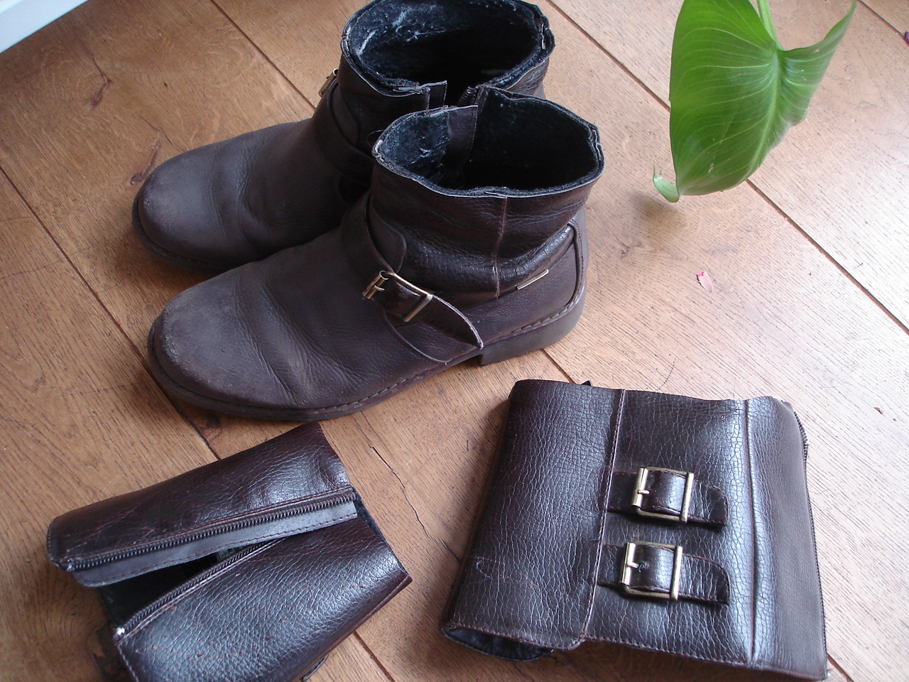 Desweiteren hier noch eine Möglichkeit, halsabschneiderischen Kinderschuhunternehmen ein Schnippchen zu schlagen (diesen Satz gucke ich mir gleich mal bei Google-Translate an). Zwei Wochen nach dem Kauf dieser nicht gerade billigen Markenstiefel gab erst der eine Reißverschluss, dann der andere auf halber Höhe auf. Das arme Kind lief dann den Winter über mit halboffenen Reißverschlüssen herum – weil die Stiefel fernab der Heimat gekauft worden waren, war ein Umtausch nicht möglich. Leider erst gegen Ende des Winters kam mir die rettende Idee: Ich schnitt die Schäfte der Stiefel auf Höhe der kaputten Reißverschlüsse ab, verschmolz die abgeschnittenen Reißverschlussenden mit einem Feuerchen und steppte die Stiefel mit der Maschine und einer Ledernadel oben rundherum knappkantig ab. Fertig waren die Stiefeletten. Kind glücklich, Vorfrühling gerettet.