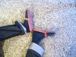 Weckgummisandalen wurden mal in echt getragen laut Berichten der Großmutter. Kreative Kleine.
