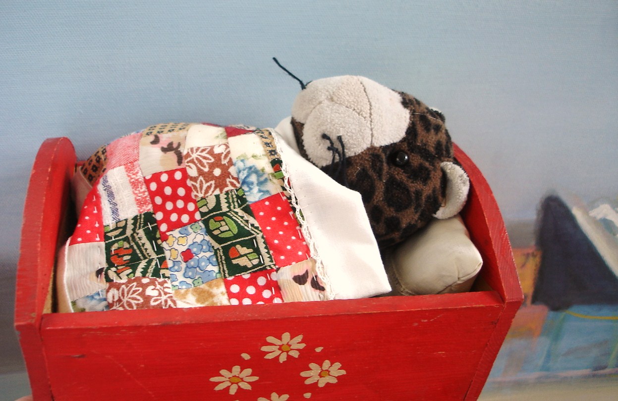 2. Ich beneide dich um die junge Puppenmutter(, die ja demnächst auf Gymnasialanwärterin spielen muss, da tut es gut im häuslichen Bereich so frei spielen zu können) bei dir und dazu um das süße Bettchen mit Quilt und um Tigrou, so sehen Haustiere aus, wenn sie geliebt werden!