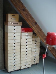 Diese Schubladenschränke (Schubladenteile von Ikea, zusammengeleimt und mit Rollen versehen) habe ich schon seit ein paar Jahren und finde sie sehr praktisch. Nun wollte ich sie gern erweitern, aber leider sind die Elemente nicht mehr im Programm.