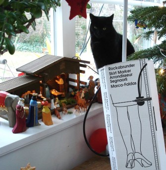 Zum Dreikönigstag (Bescherungstag in Spanien) habe ich gestern einen langgehegten Wunsch erfüllt bekommen: Einen Rockabrunder. Die Berliner Nähfachfrauen (z.B. Cat und Lucy)  behaupten zwar, noch nie so etwas gebraucht zu haben, bei ihnen stimme immer alles einfach so. Bei mir dagegen machen die Säume jedes Mal  eine Berg- und Talfahrt. Wahrscheinlich bin ich schief wie ein Quasimodo. Bisher musste immer mein Mann ran und abmessen, in Zukunft erledige ich das selbst per Kreideluftstoß.
