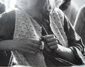 Dieser Emma-Artikel aus dem Jahre 2010  kommt auf den ersten Blick zwar auch nicht ohne einen coolen umhäkelten Panzer aus. (Rosa Topflappen, von vielen Frauen gehäkelt, jaja). Aber insgesamt gibt er einen ganz guten Überblick über das auch in den letzten hundert Jahren schon öfter mal gar nicht brave Handarbeiten.  „Seine erste Renaissance erlebte das Stricken in den frühen 1980er-Jahren, an den Schnittstellen zwischen Frauen- und Ökologiebewegung.“  So erinnere ich es auch: Unsere 68er Lehrer hatten ihren Marsch durch die Institutionen damit begonnen, uns das Stricken im Unterricht zu erlauben, ja schmackhaft zu machen. Wir handarbeiteten was das Zeug hielt. Ich habe mal in meinen alten Fotos aus den 80ern gewühlt: Jede Menge Stricken, Häkeln und Nähen, ich bin ganz überrascht.