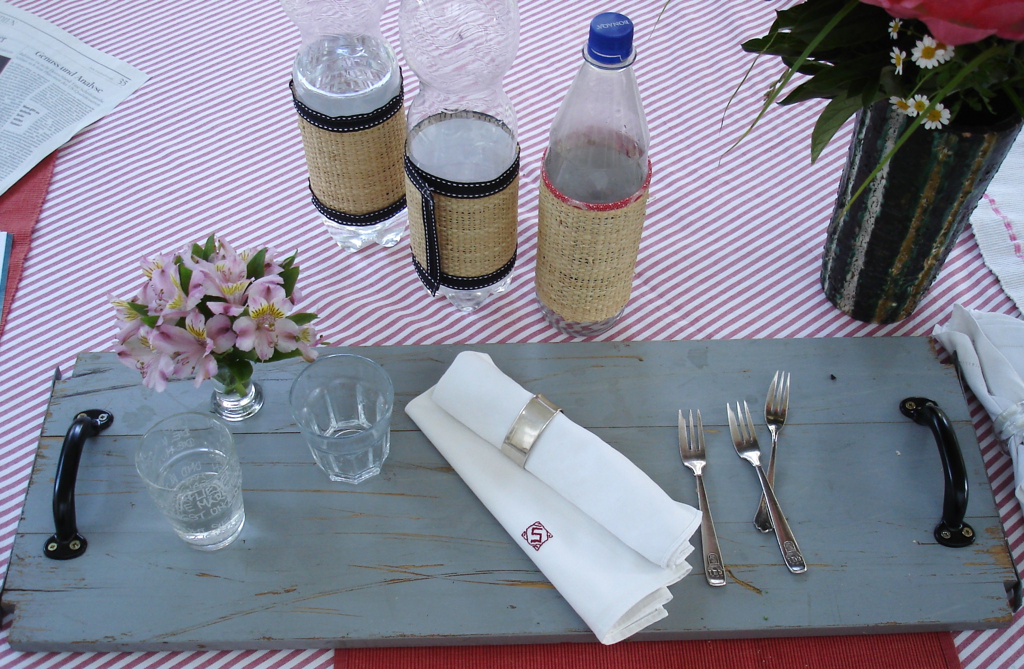 Denn bei uns steht auch immer eine Mineralflasche auf dem Tisch, was ich eben auch nicht sehr dekorativ finde!