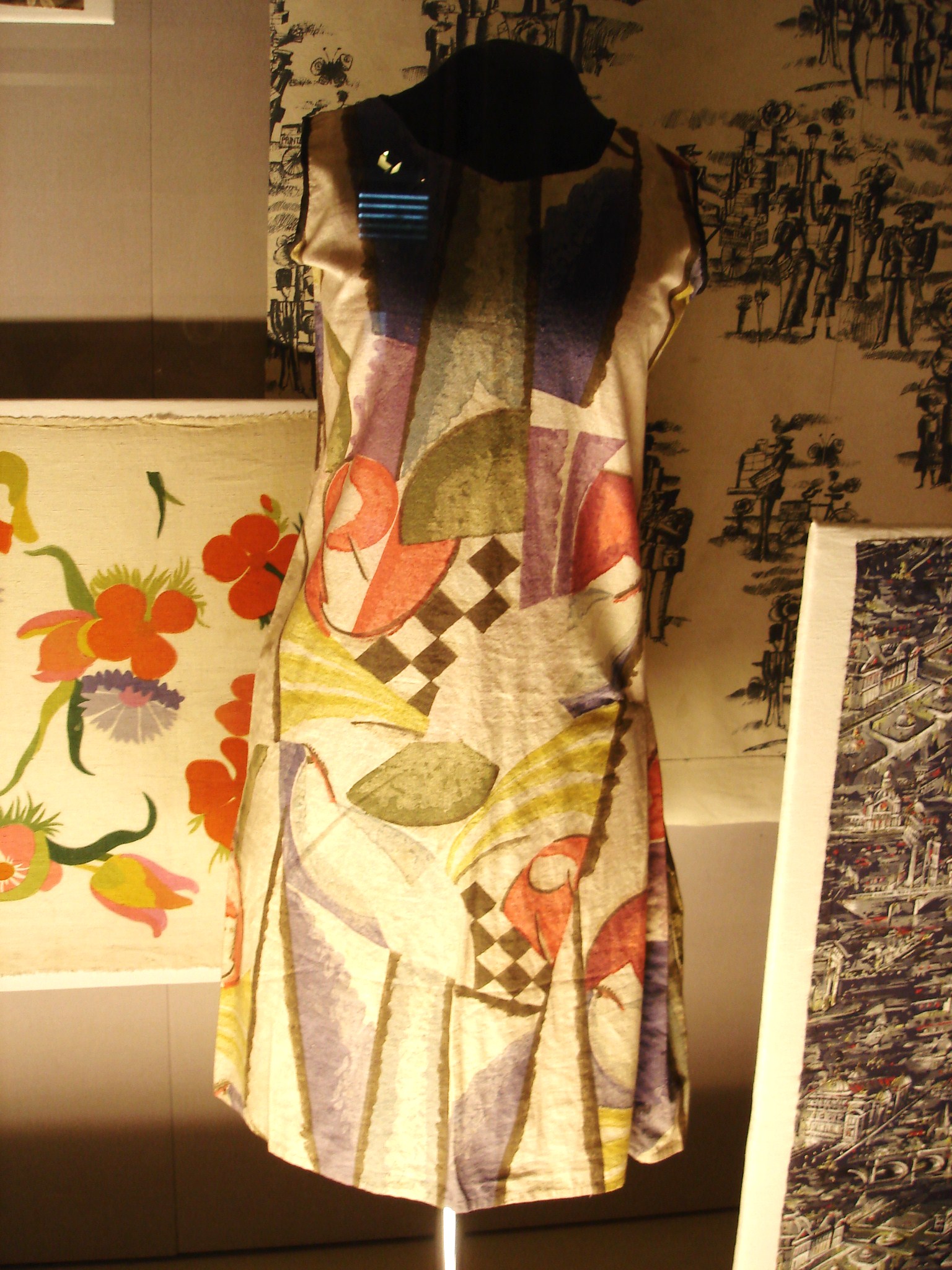 Kleid mit Block-Druck (à la planche) und Schablonentechnik (Pochoir).