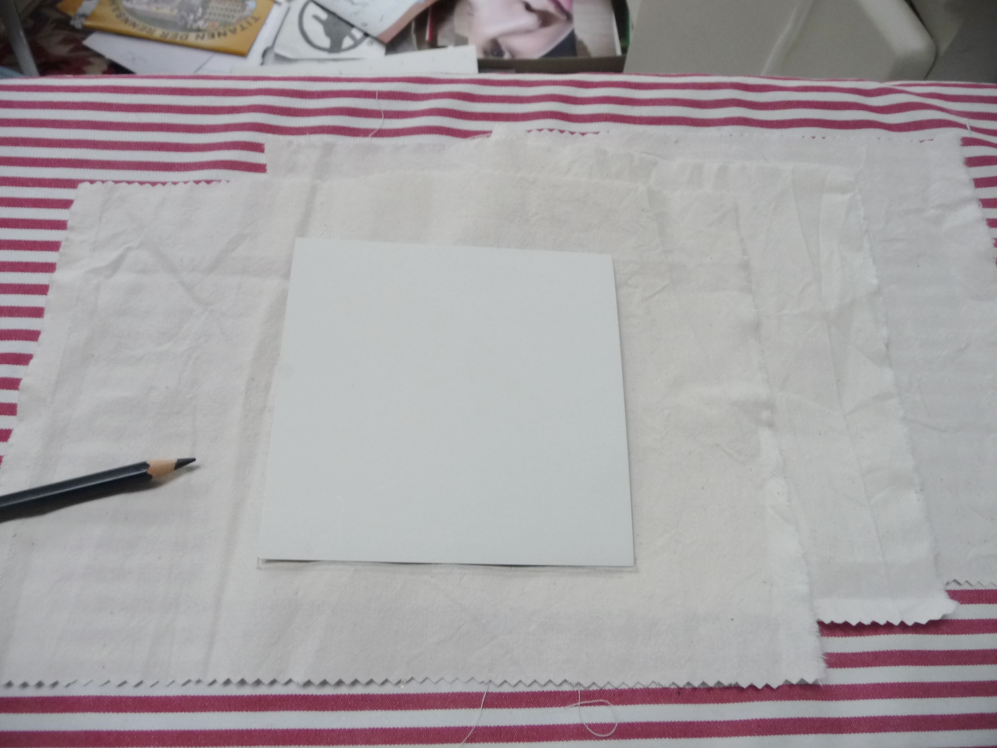 Die Machart ist ganz simpel, aber ich kam nicht auf Anhieb darauf. Daher hier von heute morgen noch eine Fotoabfolge eines quadratischen Passepartouts. (Beim Kreis läuft es genauso).