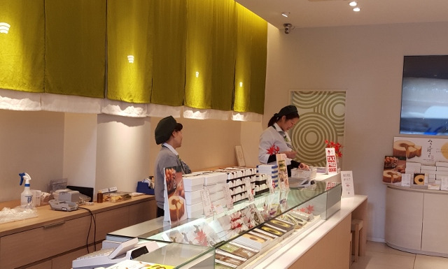 Wunderschön finde ich ja auch immer die Stoffsachen aus Japan, wie zum Beispiel diese halblangen Vorhänge in einem Kuchengeschäft.