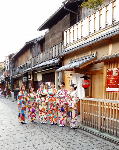 Die so bunt gekleideten Damen in ihren Yukatas sehen toll aus :) Da gibt es die Tradition, je älter die Frau wird, desto schlichter werden diese Kleidungsstücke. In der Jugend werden sehr schrille und prächtige Farben getragen. Oftmals auch ganz absichtlich mit farblich abstechendem Obi (der „Gürtel“). Dass die Obis selbst mit Mustern sind, habe ich noch nie gesehen, vermutlich eine moderne Entwicklung (Die ich absolut schön finde :)