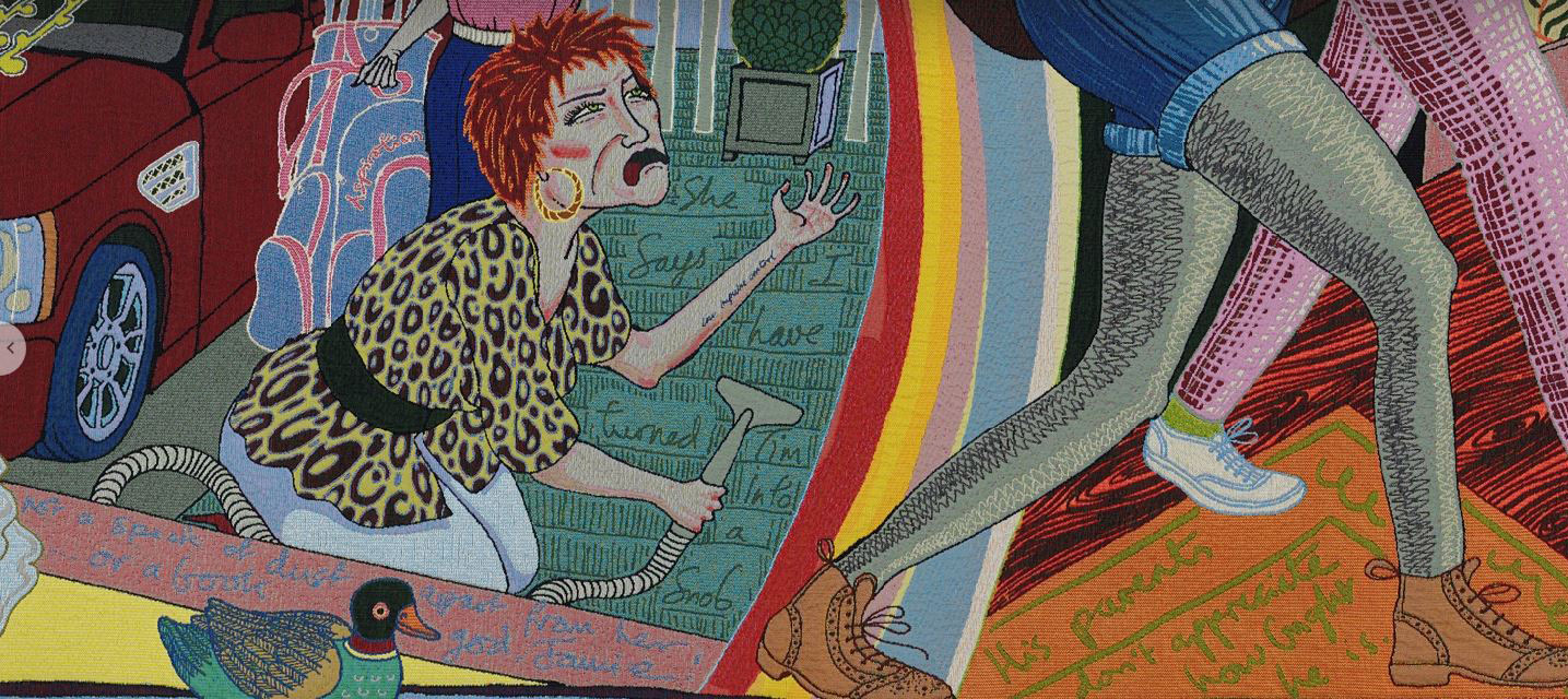 Mein Kochtopf ist auf der Tapisserie eines Turner-Preisträgers verewigt, mein Handy und mein Wandspiegel auch. Das ist kein Zufall, denn der britische Künstler Grayson Perry beobachtet den Lebensstil verschiedener Bevölkerungsschichten ganz genau.