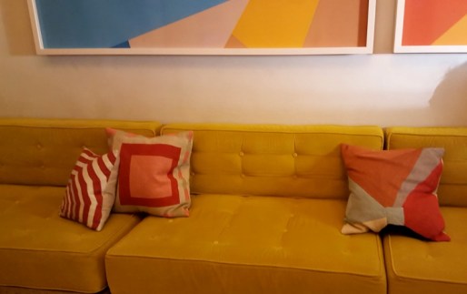 Ja, stimmt, daran dachte ich auch. Außerdem benutzen sie im Film auch eine Maschine – das ist dann glaube ich eine Kettenstichmaschine (Bele hatte in den Kommentaren zum vorhergehenden Beitrag vermutet, dass auf dem Bild aus der Stickwerkstatt solche Maschinen zu sehen sind). Ich wollte eigentlich noch recherchieren, ob die Kissen auf meinen Fotos nicht vielleicht mit solchen Maschinen gemacht sind. Das bunte Kissen hat „nur“ 30 Euro gekostet, für reine Handarbeit natürlich zu wenig – aber wer weiß, ob Ausbeutung oder Maschine dahinter steckt.