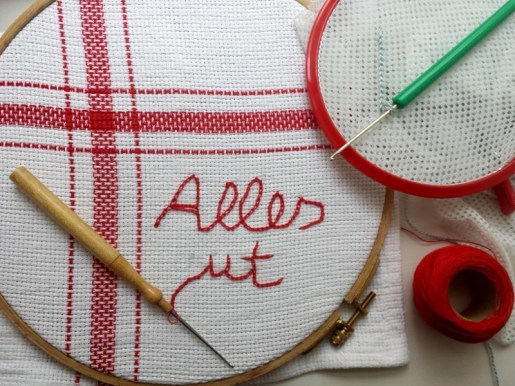 Vor Jahren habe ich diesen Stich per Nähnadel benutzt für eine Weste, da wußte ich nicht, dass man das mit der Häkelnadel oder Spezialnadel machen kann. Könnte ja mal ein foto machen. Deine Versuche gefallen mir sehr und ich finde sie allesamt gut. Ich habe vor geraumer Weile auf ein geschirrtuch per Maschine geschrieben, aber dein Kettenstich ist viel passender, denn hat mehr Körper. Es ist ein Handwerk, in dem Übung Könner macht.