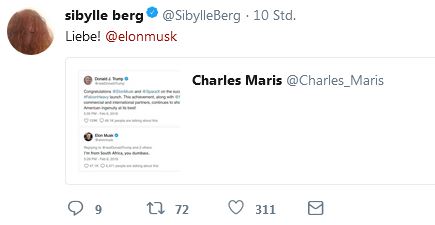 Hier kommt meine jährliche Sammlung von Falschmeldungen. Anders als gedacht, hat sich das Thema für mich nicht durch Gewöhnung erledigt. Gerade ist es mir wieder passiert, ich bin reingefallen: Die Schriftstellerin Sibylle Berg teilt eine freche Antwort des Tesla-Unternehmers Elon Musk gegenüber Trump, ich lese das, denke, wooow, zeige es meinem Mann, wir lachen beide frohlockend. Endlich mal ein Wirtschaftsboss, der Trump die Stirn bietet! denken wir.