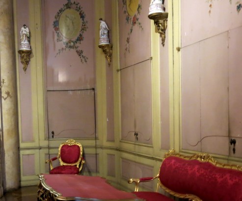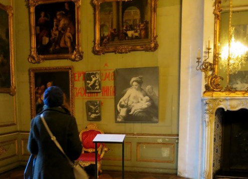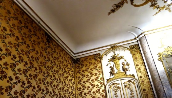 Es gefiel es mir, in den Räumen so viel Patina zu sehen. Nach meinem letzten Besuch im Neuen Palais vor sechs Jahren schrieb ich: „Man möchte vor den Restauratoren niederknien und sie bitten, auch doch bitte in Zukunft möglichst wenig daran zu rühren. Alles lebt die Geschichte, bis hin zu großen roten russischen Lettern, von den Besatzern auf eine Tapete gemalt.“