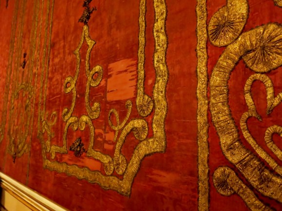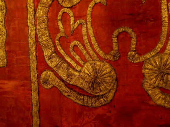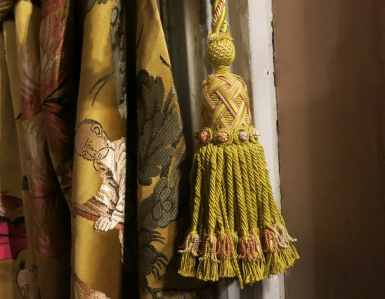 Noch schwelge ich in all der Pracht der Gewebe, Seiden, Tressen und Troddeln. Eine Detailaufnahme lässt nur erahnen, was für ein Aufwand allein in so einer Quaste steckt.