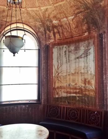 Mit Tropenszenen bemalt sind die Wände in diesem runden Zimmer, dem sogenannten «Otaheitische Kabinett» (Otaheite=Tahiti), in dem man sich in Südseewelten hinwegträumen konnte, als säße man in einer Bambushütte unter Palmen.