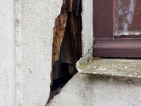 Und diese Holzfassade ist wirklich renovierungsbedürftig!