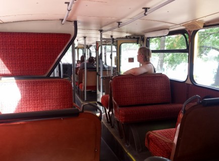 Sehr schön anreisen zum normalen BVG-Tarif kann man mit den Traditionsbussen der Linie 218, sie fahren täglich ab Messe Nord/ICC und halten direkt am Fähranleger.