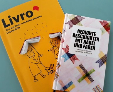 Die Textilgeschichten-Anthologie hat bei der Leipziger Buchmesse mitgemacht – am Stand von Livro, an dem kleine Verlage ihre Titel ausstellen können. Vielleicht war ja jemand von euch da und konnte hineinblättern.