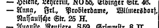 In den Berliner Adressbüchern findet sich immer wieder die Berufsbezeichnung „Probierdame“, so wie hier 1920 bei Frl. Anna aus Wilmersdorf.